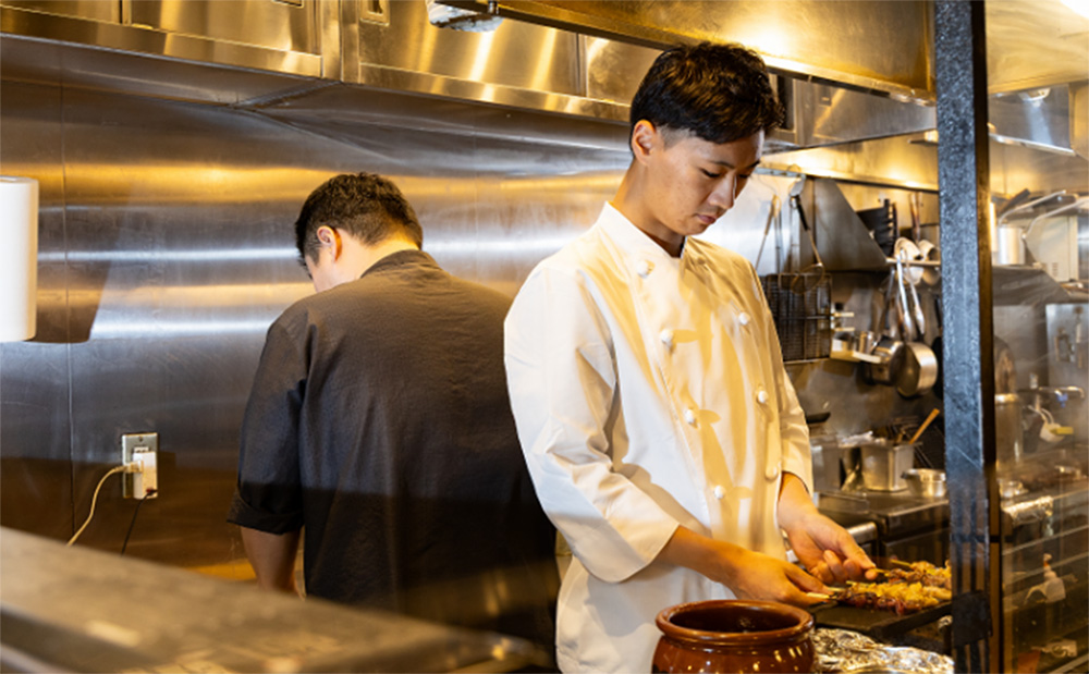 - 何よりのやりがいは、お客様からいただく「美味しかった」のひと言です。現場でその声を直接聞けることが、この仕事の一番の魅力だと感じています。そして、九州には素晴らしい宝(食材)が豊富にあります。その生産者さんの想いと、お客様の喜びを“料理”を通してつなぐ役割を担えることに、大きなやりがいを感じています。